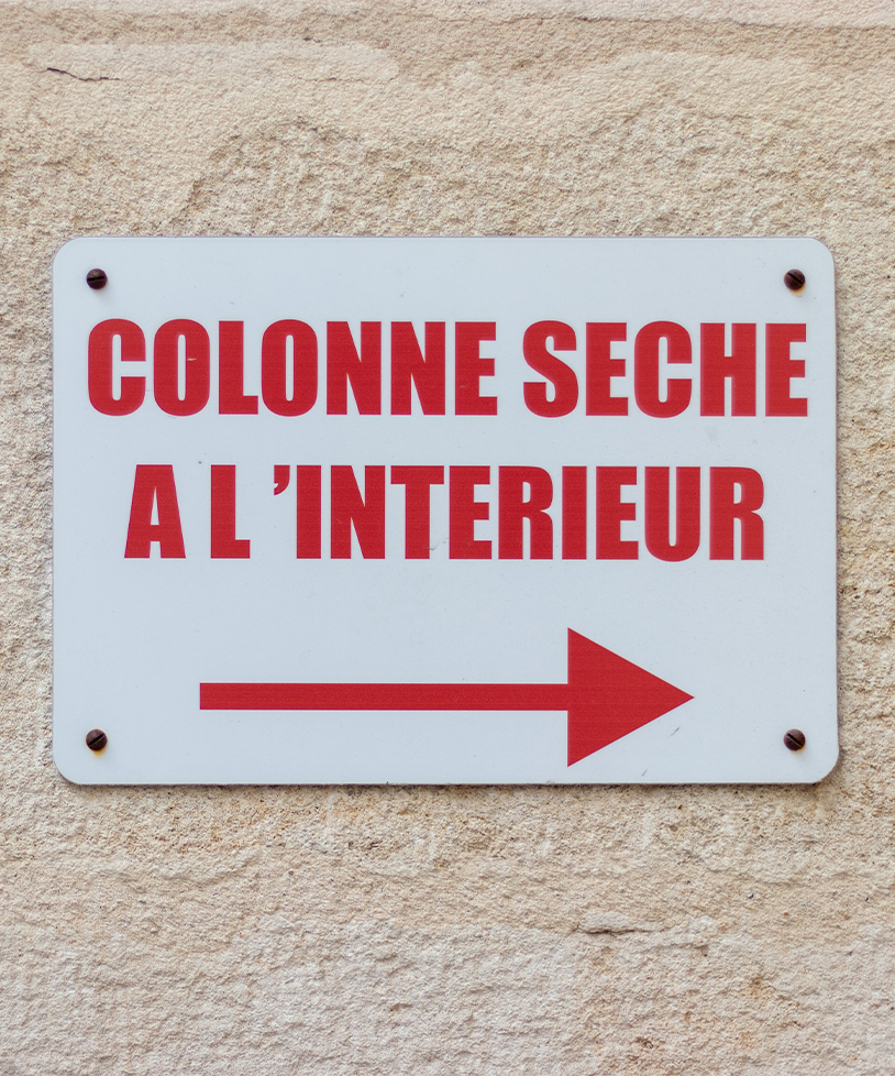 La colonne sèche, quant à elle, est maintenue vide en permanence. Elle ne se remplira qu’en cas d’incendie après raccordement à une source d’eau extérieure, sous pression.